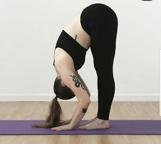 From downward facing dog, crawl the hands back to the feet. As the upper body cascades over the legs, allow the arms to dangle over the legs or maybe choose to grab on to opposite elbows forming a box around the head. Keep pressing the heart forward so that you do not round the spine. Put a slight bend in the knees and then drop your arms to the ground. Imagine that you could let go of any anger or negative emotion with every exhale. After ten breaths, rise with a strong spine, circling the arms to the sky and coming to stand.